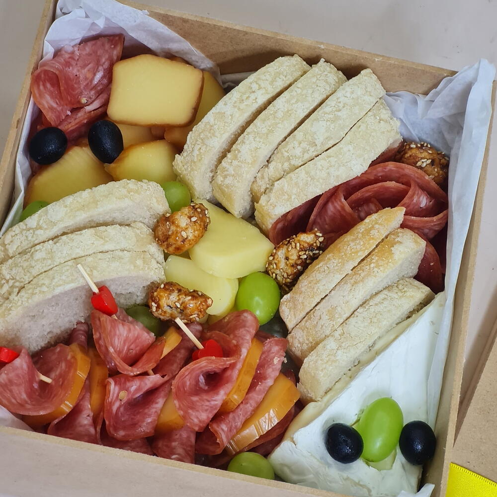 Uma Caixa de Pães, Frios e Frutas é uma opção deliciosa e versátil para refeições leves, lanches ou até mesmo para um piquenique. Geralmente, essa caixa é montada com uma variedade de pães frescos, como baguetes, pães de forma ou pães artesanais, acompanhados de uma seleção de frios, como queijos, presuntos, salames e patês. Além disso, inclui uma variedade de frutas frescas, como uvas, morangos, maçãs, kiwis e outras frutas da estação, proporcionando um toque de frescor e doçura à refeição. É uma opção prática e deliciosa para compartilhar com amigos, familiares ou colegas, seja em casa, no trabalho ou em um passeio ao ar livre.