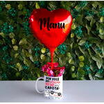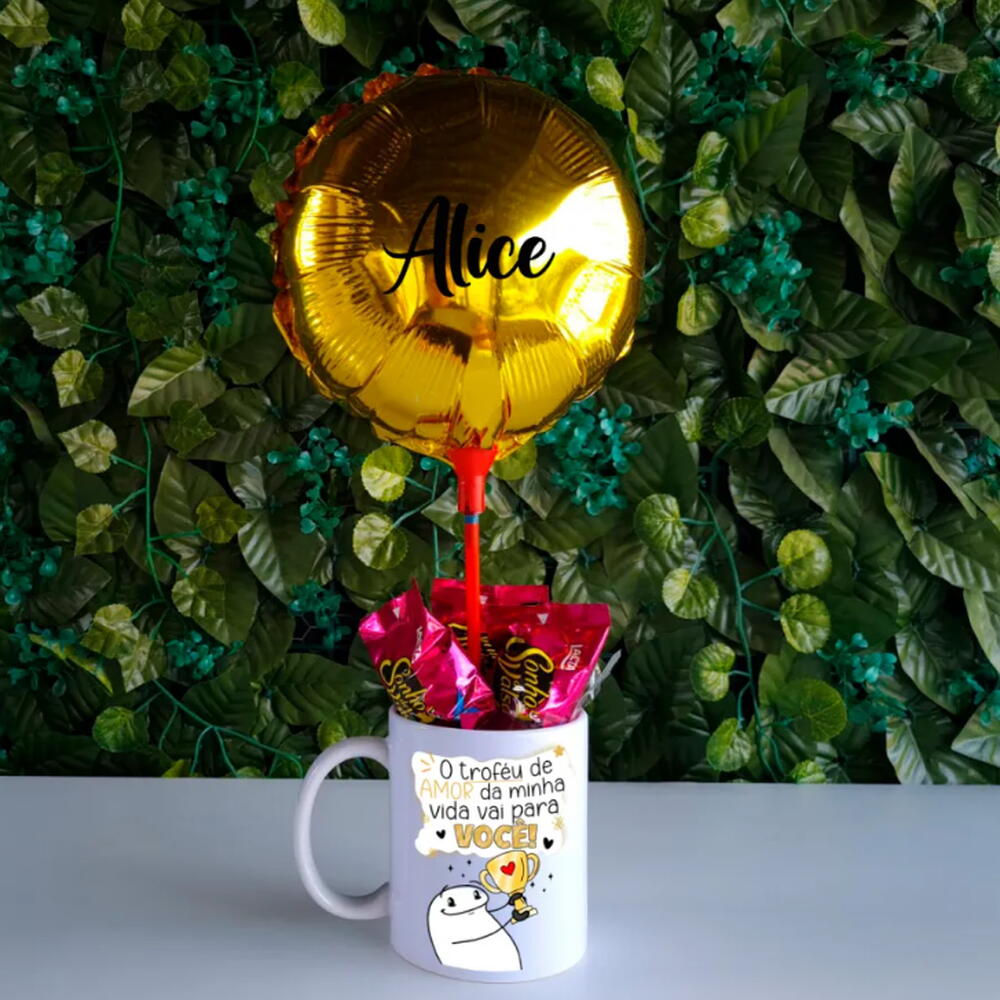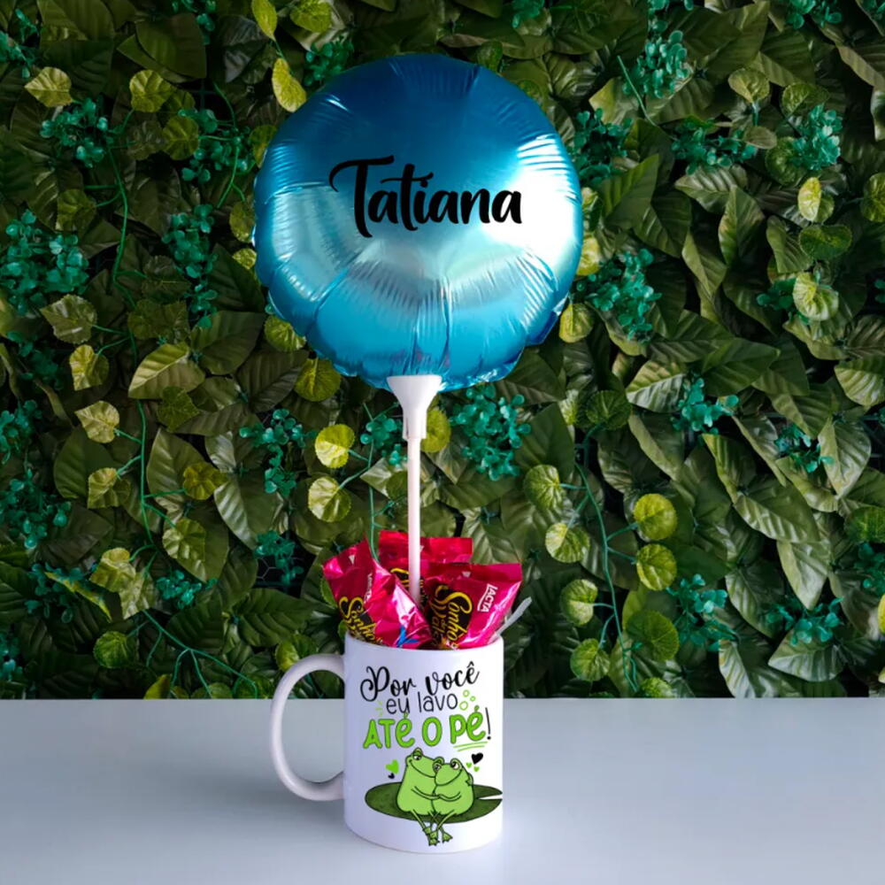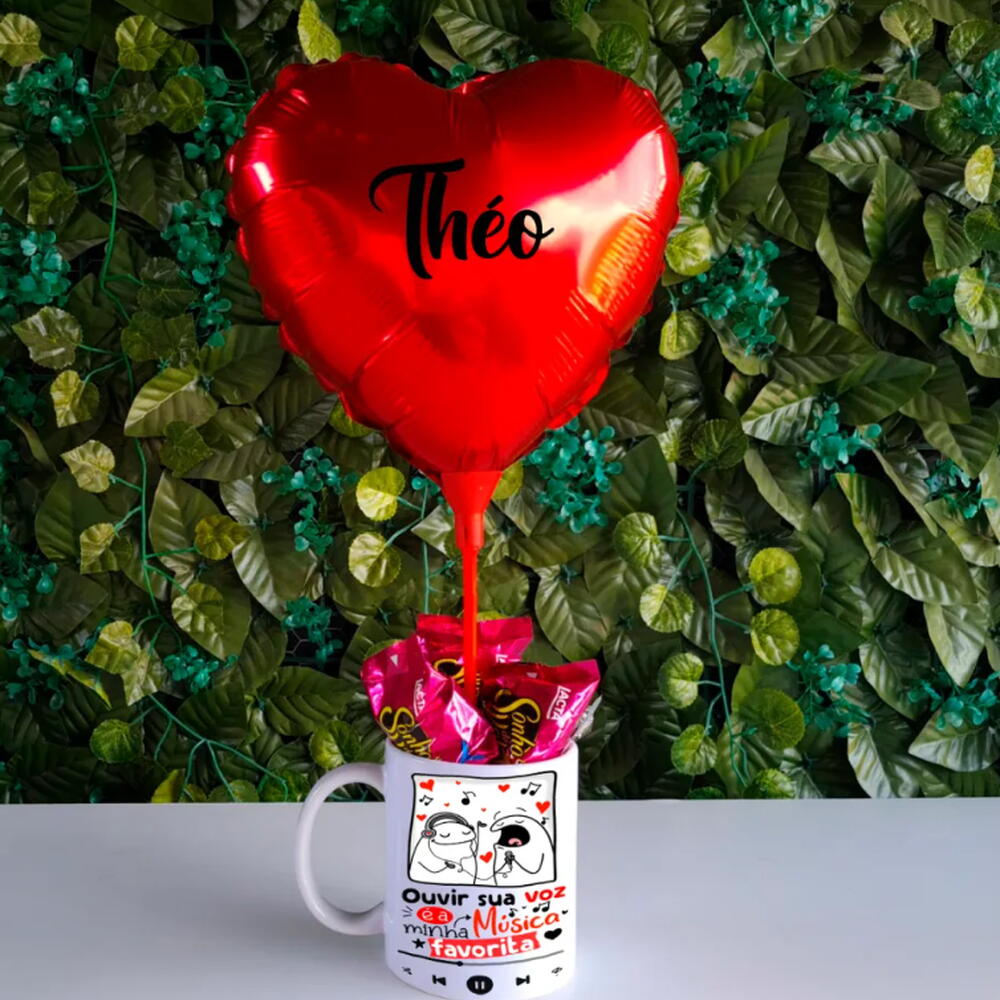 Caneca de porcelana branca personalizada – Impressão por sublimação com foto, nome ou frase especial. Uma lembrança duradoura que vai acompanhar a pessoa amada no dia a dia. Balão adesivado com nome escolhido – Um detalhe exclusivo que torna o presente ainda mais personalizado e inesquecível. 3 chocolates Ouro Branco ou Sonho de Valsa – Um toque doce para complementar a experiência e adoçar o dia de quem recebe. Embalagem sofisticada – Feita com plástico transparente e finalizada com corda de sisal, garantindo uma apresentação charmosa e delicada. Mensagem especial – Seu texto personalizado impresso em uma linda cartinha para emocionar ainda mais.