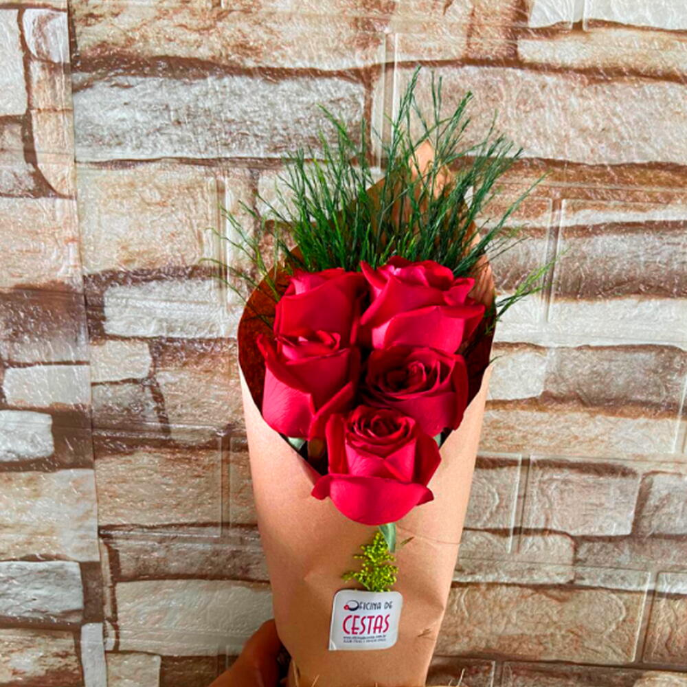 Este buquê é uma combinação encantadora, consistindo de cinco rosas cuidadosamente selecionadas, acentuadas com folhagens finas. Cada aspecto do buquê é aprimorado com uma embalagem exclusiva de designer e um laço delicado, fazendo dele uma escolha perfeita para qualquer ocasião.